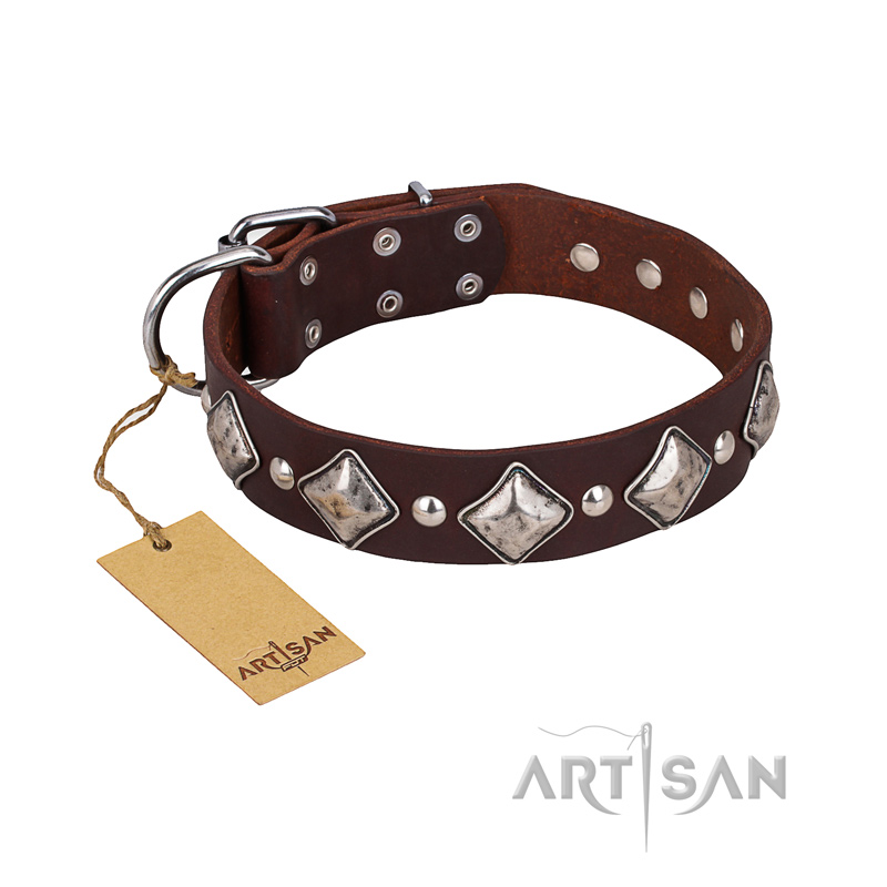 Are you fond of stylish things? Let your beloved dog enjoy wearing such collars on! Present him this incredible leather dog collar with embellishments from FDT Artisan. This accessory is created for those who just are fond of elegant style. In this exceptional collar, your doggie will have more fancy, but stylish look. Your adorable Central Asian Shepherd will get the gentlest treatment when wearing this supply. Genuine leather is soft and totally eco-friendly.