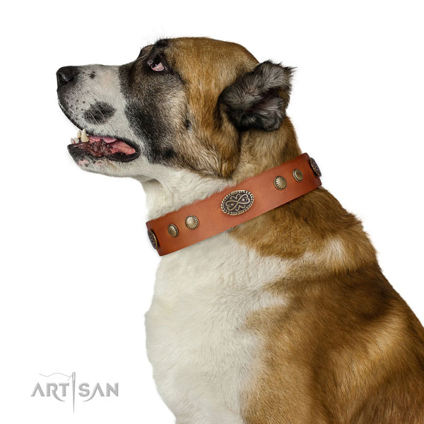 Do you like elegance and style? Allow your favourite Central Asian Shepherd enjoy wearing such accessories on! Present him this impressive leather dog collar with adornments from FDT Artisan. This gear is crafted for those who just love fashion style. In this amazing collar, your Central Asian Shepherd will have more rigid, but handsome look. Your adorable doggie will get the best treatment when wearing this supply. Genuine leather is gentle and absolutely safe.