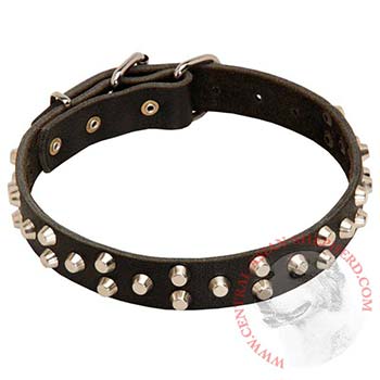 The main distinctive feature of this Designer Collar is its decoration, in particular, studs which are made of nickel plated steel. The advantage of this metal is that it is resistant to rust and corrosion. These studs have a silver-like shine, and so make the Collar extremely fashionable. It is easy to emphasize your dog's personality with such an item. Each pyramid is securely fixed with rivets to prevent their falling off.
