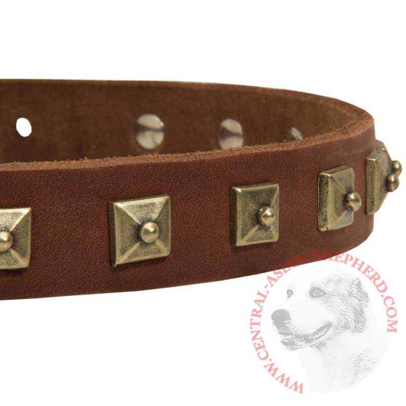 1 inch (25 mm) wide Studded Leather Dog Collar for Central Asian Shepherd