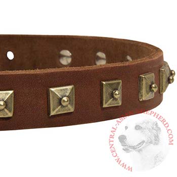 Central Asian Shepherd Leather Collar with Hand Set Studs