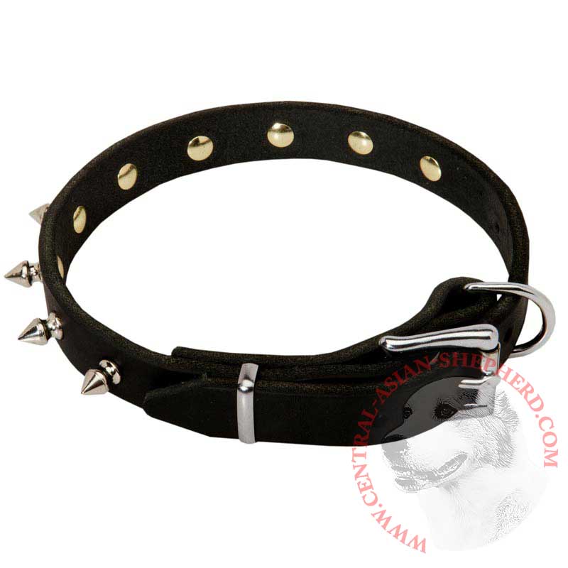 3/4 inch (19 mm) Wide Spiked Leather Collar for Central Asian Shepherd